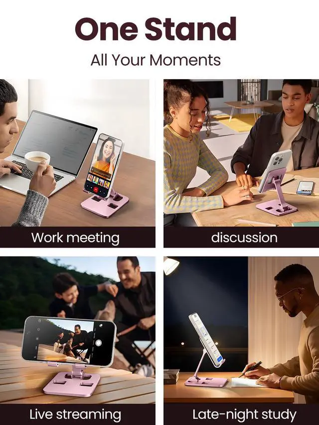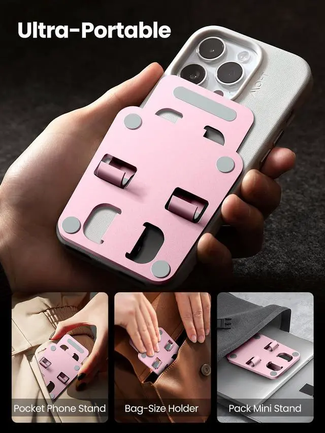 Ultra-Portable Collapsible Phone StandFully Collapsible to Palm-Size (Only 5×3.2×0.8in) easily slips into your pocket, backpack or purse for on-the-go use.