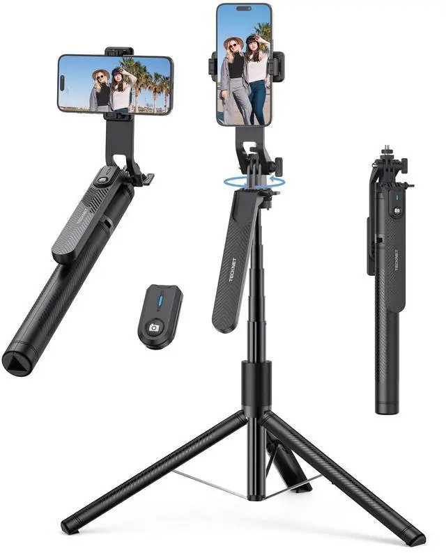 Versatile 71" Phone TripodTECKNET 71" updated tripod combines the function of phone stand with a selfie stick.Crafted from high-quality aluminum alloy, its sturdy yet lightweight design ensures stable and reliable performance. Perfect for selfies, photography, YouTube videos, vlogging, live streaming, and family gatherings