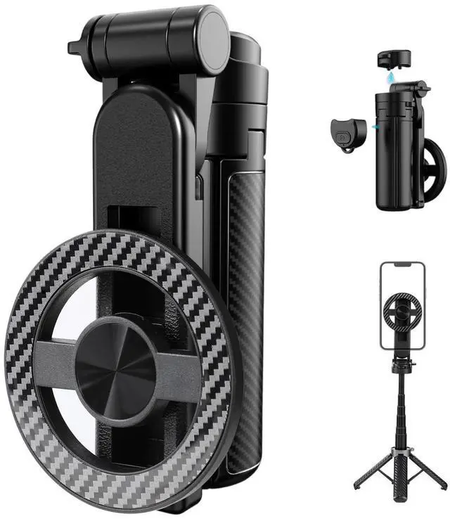 Multifunctional DesignSelfie Stick Tripod use 4-in-1 versatility Extends as selfie stick for group photos, transforms into tripod for hands-free video calls, magnetically mounts to any metal surface for creative angles, and pairs with Bluetooth remote for distance shots. One compact tool replaces four accessoriesslip into pocket for spontaneous content creation anywhere.