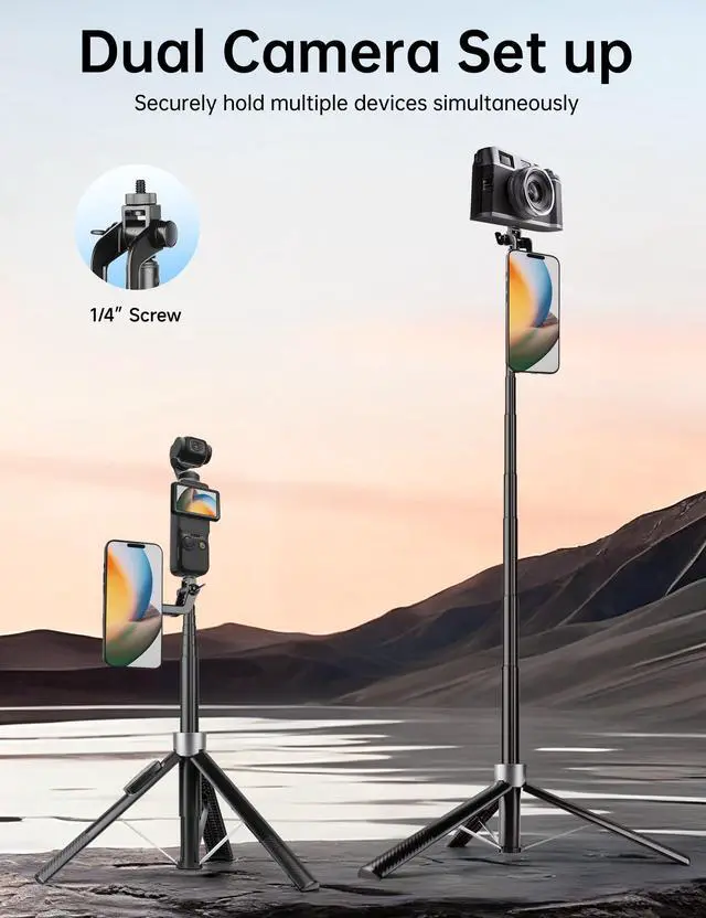 New upgraded phone tripod is detachable, it can be freely switched between phone tripod and selfie stick