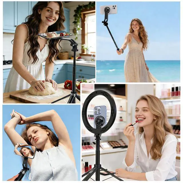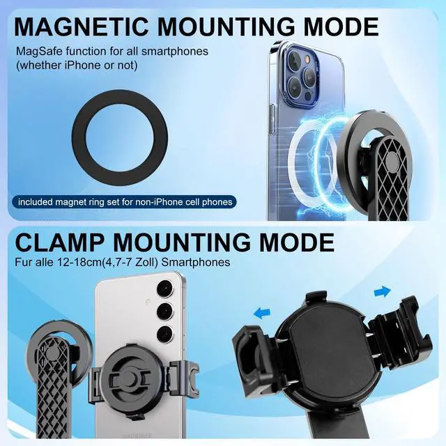 360° ROTATION MAGNETIC CONNECTION Instant adsorption to MagSafe-compatible iPhones and magnetic cases, no clamping required; 360° free rotation supports horizontal/vertical shooting, perfect for vlogging, live streams and video recording.