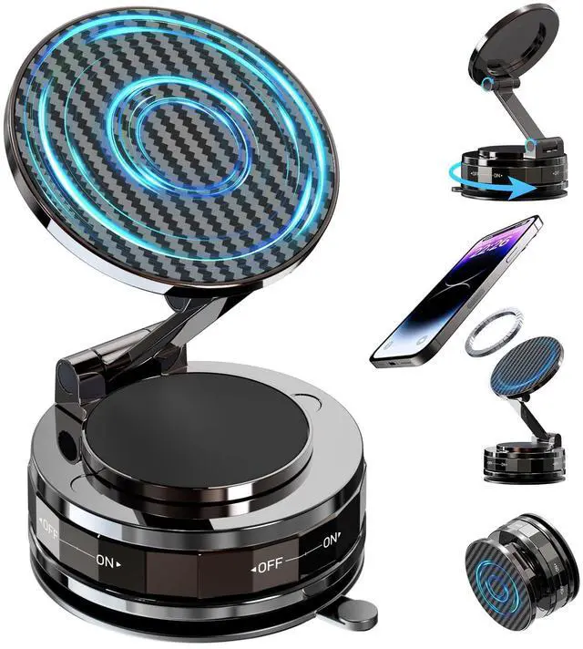 Phone Holders for Your car, Car Phone Holder for Magsafe[Upgraded Suction & Magnetic], 360° Adjustable Magnetic Car Phone Mount Compatible with iPhone & Android, Carbon Fiber Deep Brown