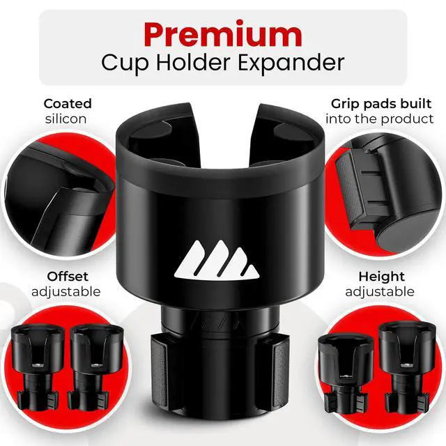 • OFFSET AND HEIGHT ADJUSTABLE: Offset the base from the expander to keep the adjacent cup holder open. This also allows two Ultimate Expanders to fit next to each other in most dual cup holder applications. Recessed or covered cup holders? No problem! We also include two spacers that can increase the height by 1" each. Between the height and offset adjustability there isn't a vehicle the Ultimate Expander will not work in. Compatible with RAV4, Subaru, Volvo, and more.