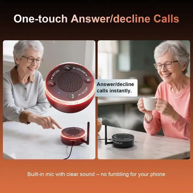 Super easy to set up, perfect for seniors! No apps, no WiFi, no charging needed—just plug into a home outlet and pair via your phone’s Bluetooth with one simple touch.