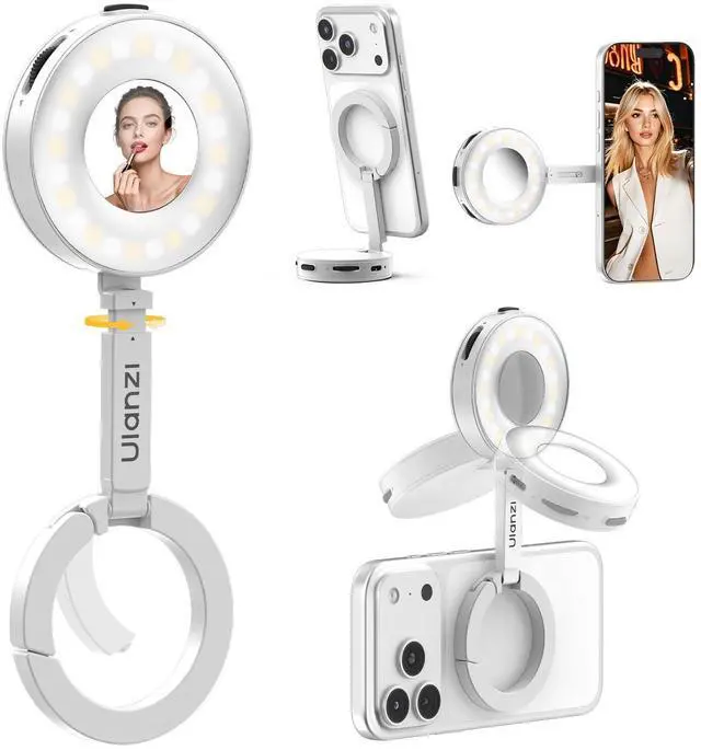 • 100% Full Coverage Lighting- No More Angle Limits: Ultra-flexible and smooth adjustment with 360° rotation, dual-side 180° tilt, and 185° flip. The center arm extends up to 2.36 inch, this magnetic selfie ring light can easily locked in your ideal lighting angle for selfies, vlogs, and portrait shotsno angle limits, no dark spots, just perfect illumination every time. Designed for beginners and professionals alike with hassle-free operation.