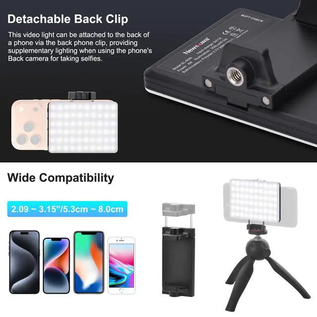 This video light helps you make videos at night or in dark areas. No more worry about finding the perfect lighting. You could shoot videos at night and take selfies even in places with poor light with confidence using this phone light. Works on taking selfie, make up, video shooting, product photography, objects supplemental light, selfie fill in light; Also can be applied as a flashlight, emergency light, or even more!