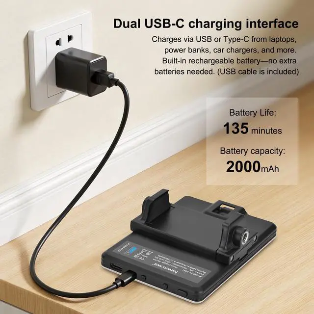 Built-in Rechargeable 3.7V 2000mAh polymer batteries. Micro USB and Type-C charging interface. USB cable is included!