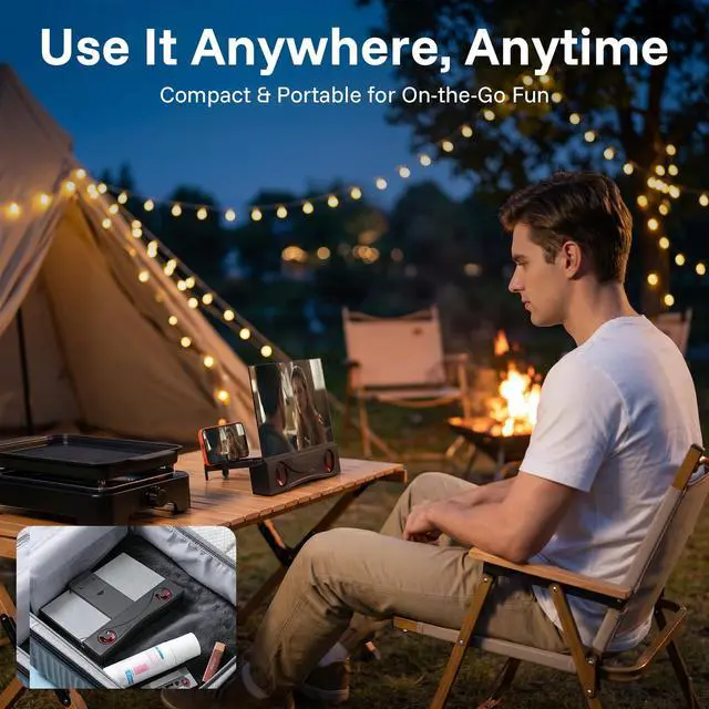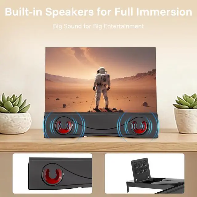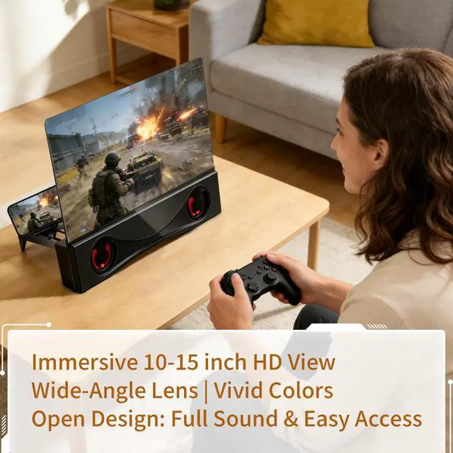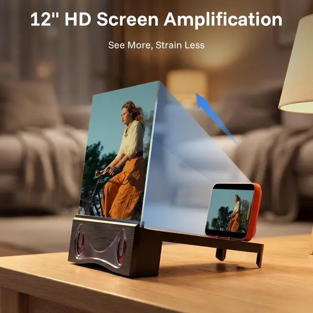 Immersive Sight & Sound Anywhere No Extra Speakers Needed This screen magnifier with a powerful built-in speaker lets you transform any space into a mini theater. Simply link your phone and enjoy movies, shows, and games with crystal-clear visuals and room-filling sound. Perfect for family movie nights, backyard parties, or camping trips you get big audio without carrying separate speakers.