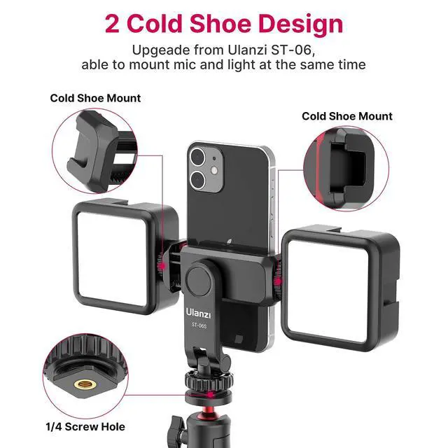 allows to mount the mic and led video light at the same time, improve your vlog or video quality