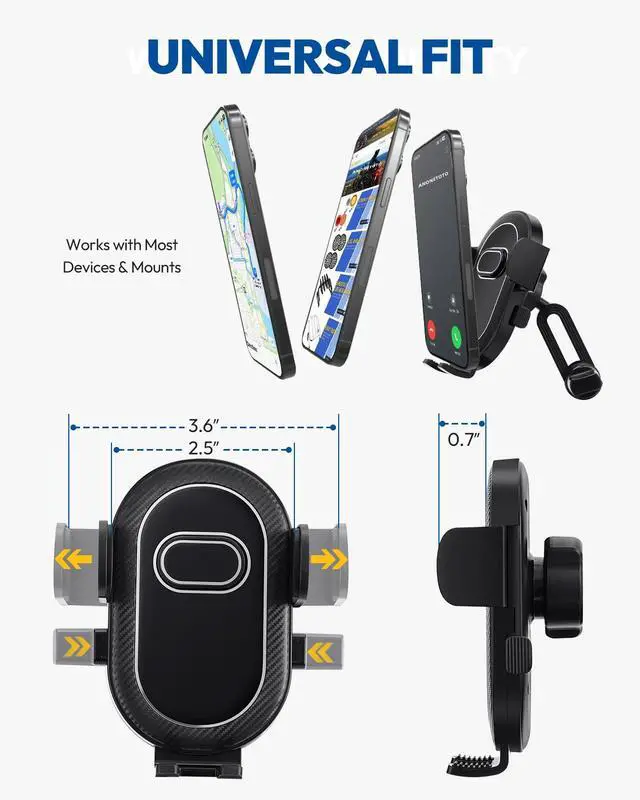 • Universal Phone Compatibility: Adjustable clamp arms securely hold smartphones up to 7.0" with thick cases, compatible with iPhone, Samsung Galaxy, Google Pixel, and other devices.