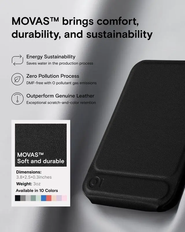 Soft and durable - Made with MOVAS, the revolutionary vegan leather, that combines a silky touch and resistance to everyday dirt and scratches.
