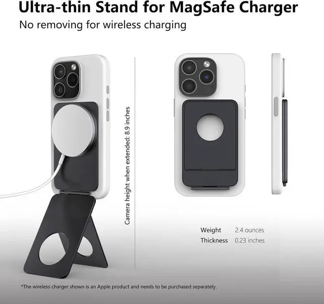 Strong Magnetic Wireless Charger stand: The phone tripod has built-in strong magnets. Mag-safe phone stand compatible with the Original Mag-Safe Charger. Super magnetic properties can improve wireless charging efficiency. Mag-safe charger is also quite easy to attach and detach your phone from the mag charging stand