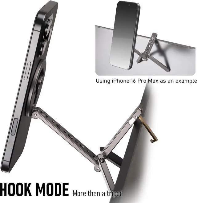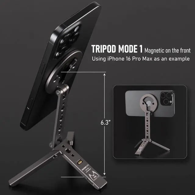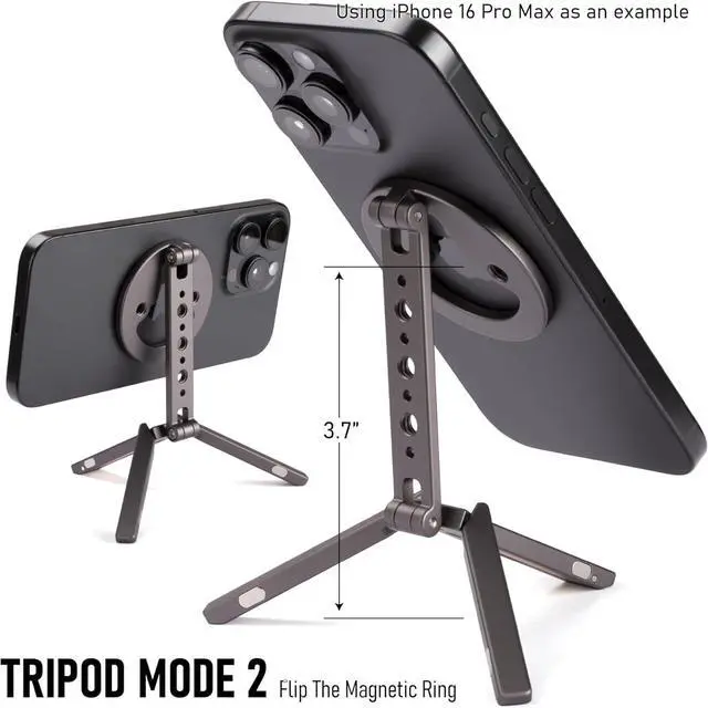 Stable Stand & Adjustable Viewing Angles: Unfold the three legs to create a stable base on any flat surface like desks, tables, or countertops. The maximum height from the center of Magnetic to the support surface is 5.5 ", and the height of the phone can be adjusted by tilting, you can easily adjust your iPhone to the perfect angle for browsing, streaming, or capturing photos and videos.