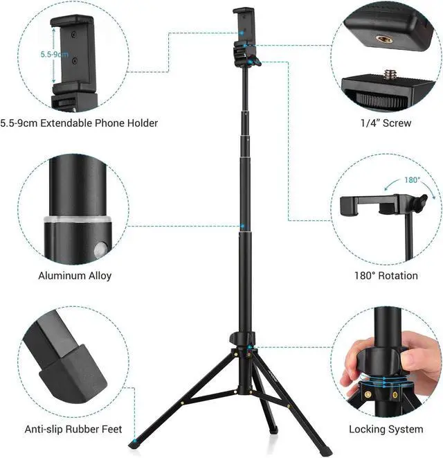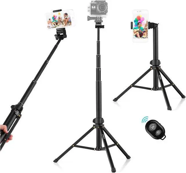 Extendable selfie stickUsed as a selfie stick, the stand can be fully extended up to 135 cm / 53 inches, giving you a greater shooting range, capture more smiling faces and more beautiful landscapes. Enjoy your selfie time freely!