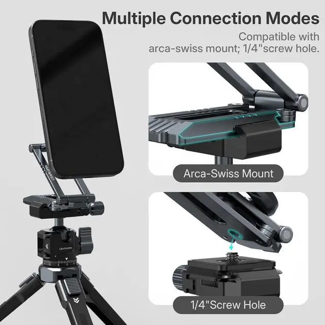 Arca-Swiss Mount Compatibility With a 1/4 screw hole, this Magnetic Pocket Phone Tripod is compatible with Arca-Swiss mounts and other standard tripod heads, offering versatility and easy integration into professional setups.
