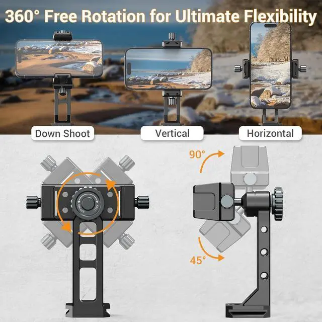 360° Rotation Design Capture every angle effortlessly with our tripod mount' s versatile 360° rotation feature, ensuring you never miss the perfect shot.