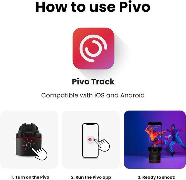 CONNECT TO YOUR FAVORITE APPS: Use Pivo to step up your social game. Download Pivo Play App to start a call or live session, and move around while Pivo tracks you. Try the fun Create Modes to create magical content that' ll make you stand out.
