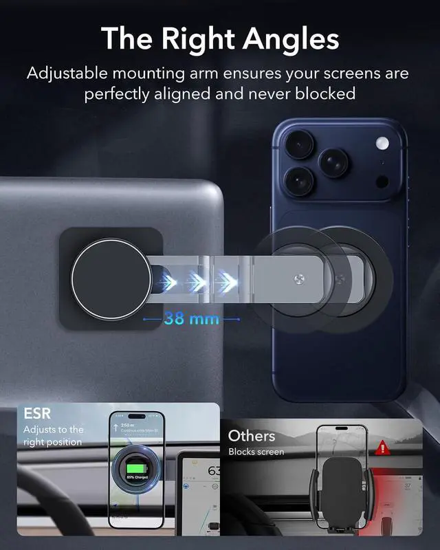 Mount Your Way: choose to mount on your cars dashboard or touchscreen; when it' s on your touchscreen, the foldable design lets you hide the mount behind the screen when its not in use; included touchscreen alignment guide for Tesla Model 3, Tesla Model Y, Tesla Model X (2023), and Tesla Model S (2023)