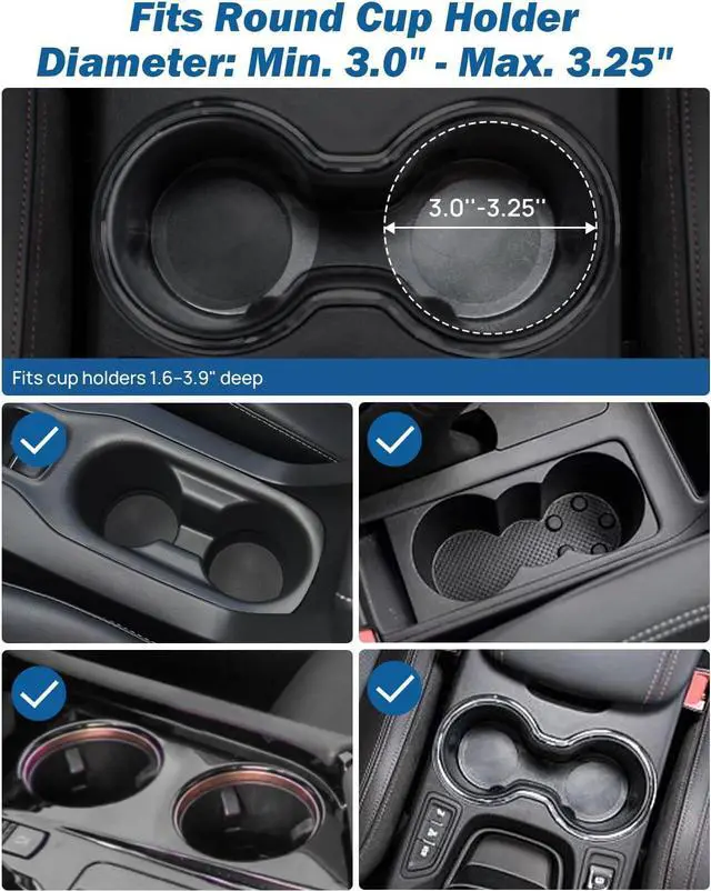 Fits Most 3.03. 25 inch Round Cup Holdersplease check compatibility; not suitable for Jeep models, Mazda 6, Audi Q5Toyota RAV4, Toyota Highlander, Lexus vehicles, Chevrolet Equinox, Subaru Forester, Subaru Outback, MINI Cooper, or Buick Envision