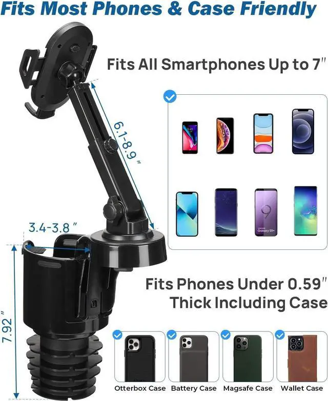 Nice Compatibility The car phone holder mount perfect for smartphones up to 7, compatible with iPhone 14 Pro Max / 14 Plus /14/ 13 / 12/ X/ Xs/ 8 plus/ 8/ 7 plus/ 7/ 6s plus, Samsung Galaxy S10/ S10e/ S9/ S8, and more. It is exceptionally sturdy to hold your phone tightly.