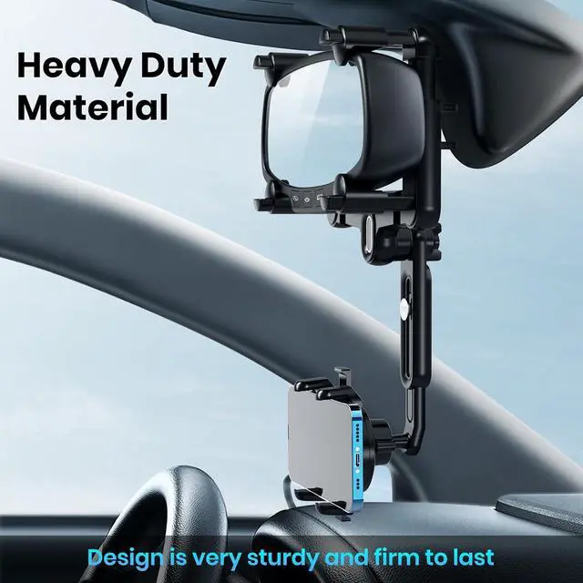 The Most Comfortable Driving Position and AngleThe rearmirror phone holder for car with highly ball-joint 360°rotation, allow you to view your phone from all angles in portrait and landscape mode. It also can move up and down up to 2.15 " depending upon your viewing angle that sends your phone much closer to you. Most importantly, you can fix it in every direction to avoid obstructing the view.