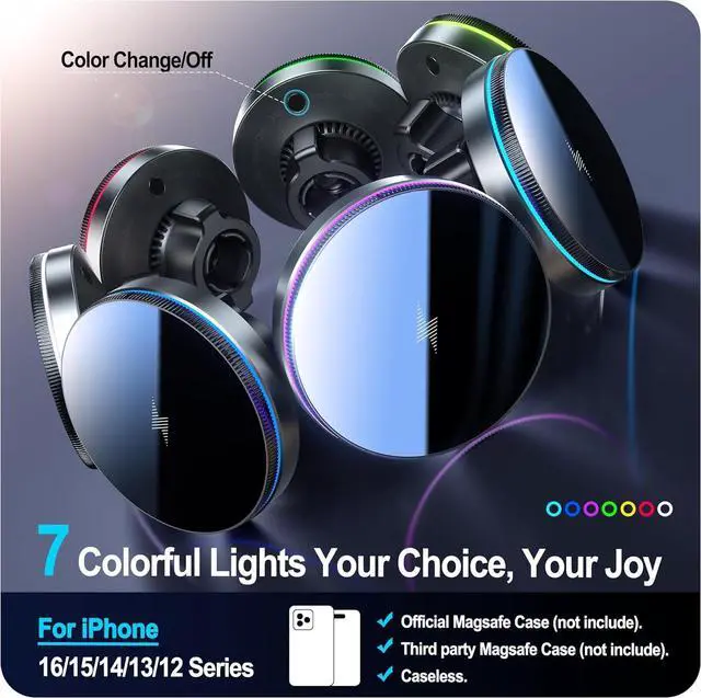 Phone Compatibility: for iPhone 16 15 14 13 12 Pro Max Plus Mini series; Works best with an official magsafe case or a third-party magsafe case (not included case) or without a case;