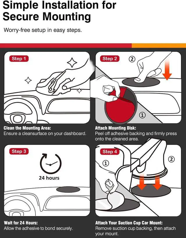 Curved Dashboards: Engineered to create a flat mounting area on curved or textured surfaces, these adhesive disks provide a strong foundation for suction cup car mounts. Enjoy a smooth, flat surface that enhances the suction grip of your phone holders, GPS Navigators, and dash cams for a secure and stable hold.