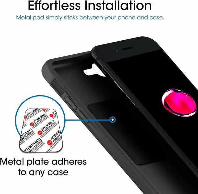 The minimalistic design of the magnetic car mount holder is one that allows you to place a metal plate onto the back of any smartphone. The magnetic mount phone holder plate has a smooth surface that is perfectly suitable for mounting and holding any smartphone in place.
