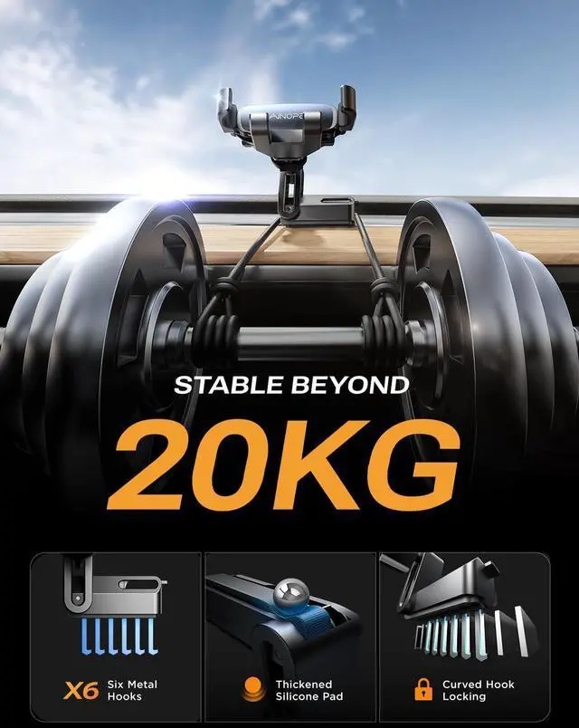 UPGRADED 6-HOOK AIR VENT HOOK: The base of this Tesla phone mount adopts a " 6-hook shape" design, forming " six gripping points", which can be firmly hooked to the grille around the air vent, without any sliding or moving, and completely get rid of common problems such as sticky glue and unstable support on the market. Plus, this Tesla phone mount can be easily adjusted to different positions for unlimited uses without leaving smudging like adhesive stands.