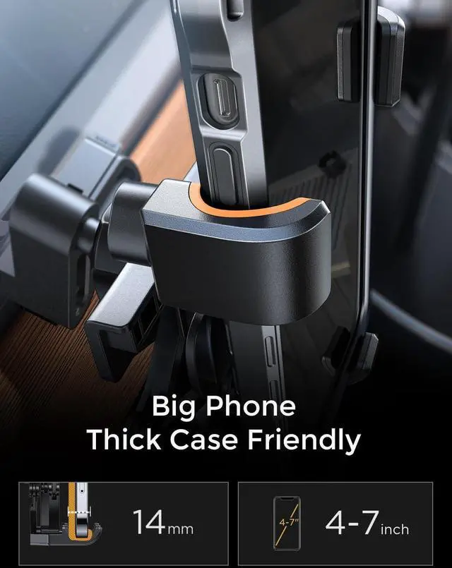 For 4-7in iPhone And ANDROID PHONES: Unlike magnetic stands on the market that require phones to have magnetic rings or external metal rings to use, this gravity stand does not require any stands and supports phone cases with a thickness of 14 mm.