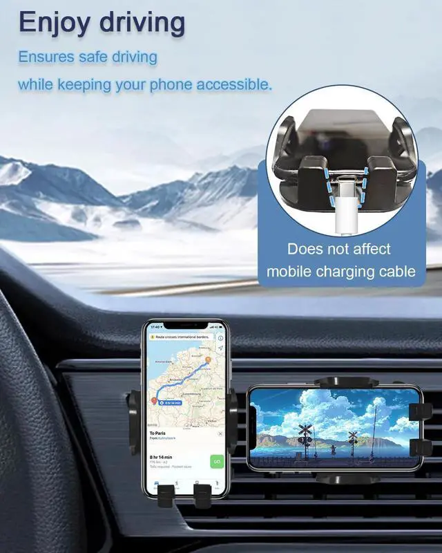 360° Rotate Freely: Use a ball joint that can rotate 360 degrees, you can adjust your phone for a portrait and landscape view. Realize one-hand operation and provide you with safer driving whether you are talking, navigating, listening to music or charging. With hands-free convenience and 360-degree rotation, it ensures safe driving while keeping your phone accessible