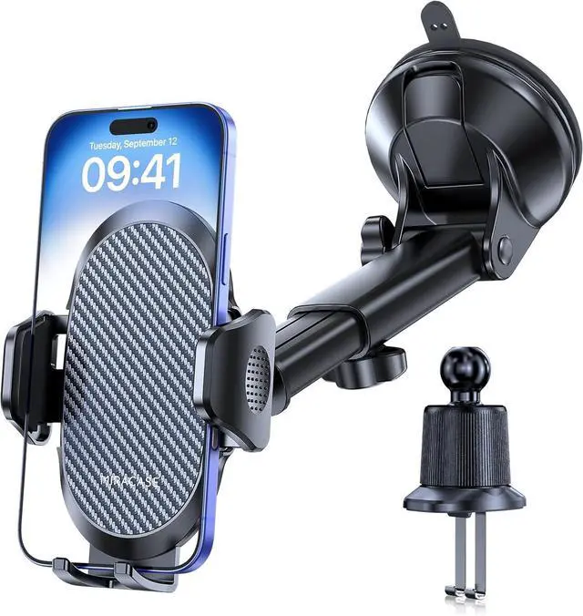 Super Stable&Secure Car Phone Holder: With upgraded extra strong suction cup and super sticky gel pad, Miracase car cell phone mount can easily and securely stick on the dashboard, windshield and other flat surfaces. With the anti-slip sponge and rubber pads, stable support shelf, the latest 2nd generation vent clip also enables you to install this phone holder securely on the car air vent without falling off and protect your phone from dropping and scratching.