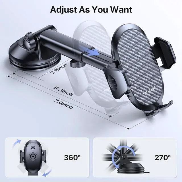 Wide Compatibility: Super wide adjustable arms design enables Miracase car cell phone holder to fit for all phones( 4.0 - 7.0 inches), thick phone cases (Including Otterbox) and other devices(width between 2.1 - 4.0 inches)