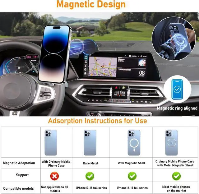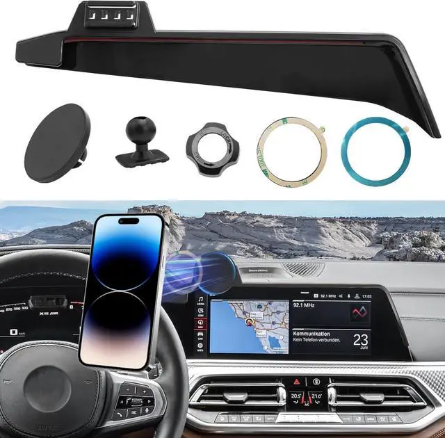 Compatible VehiclesScreen phone mount compatible with BMW X5 G05 2019-2023/X6 G06 2020-2023/X7 G07 2019-2022. X5 magnetic phone holder specifically tailored to fit the unique shape and size of the 12.3 inch color touchscreen, designed to integrate seamlessly with the OEM components, according to original center console screen measurement, great match for your screen radian, ensuring a high-quality and reliable solution.