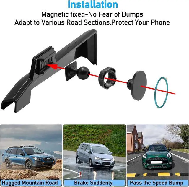 Unique DesignDifferent with most universal phone car mount, our car cell phone holder is screen mounted with organizer style, it is integrated with the original car screen, does not block line of sight and there is no noise even when driving on a rough road.