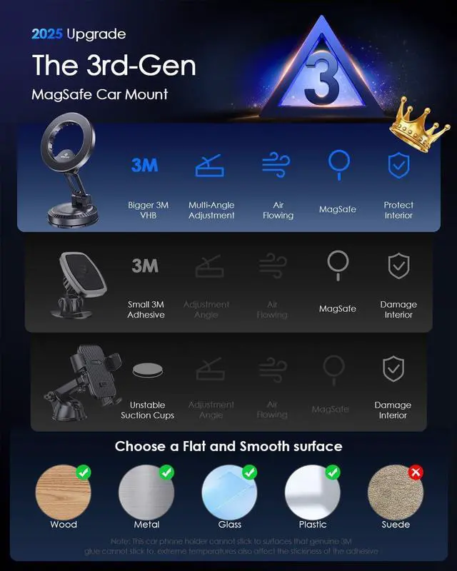 Wide Compatibility: Compatible with iPhone 16 Pro Max, 15, 14, 13, and 12, this iphone car mount is your ideal phone mount. It' s the ultimate phone car mount for all your journeys, ensuring a secure fit.