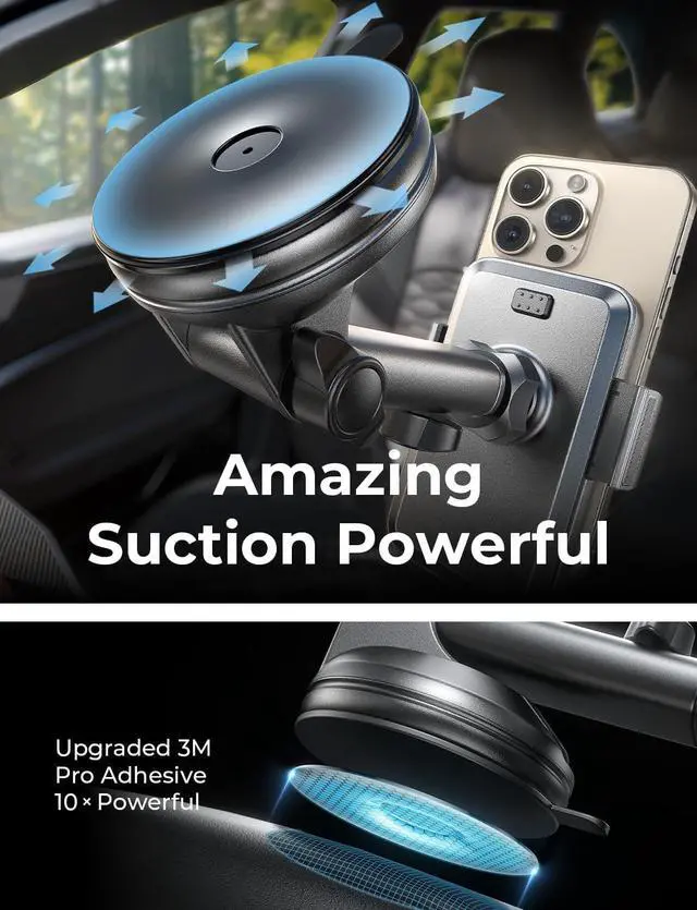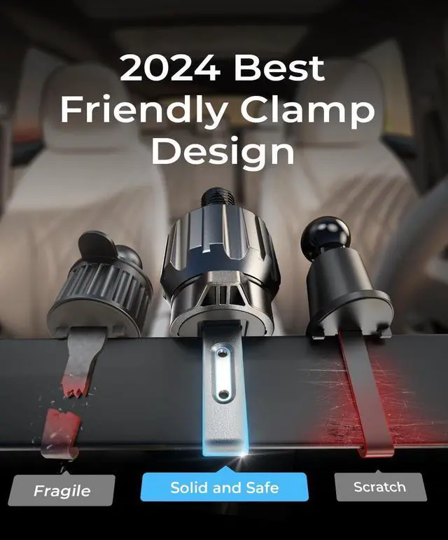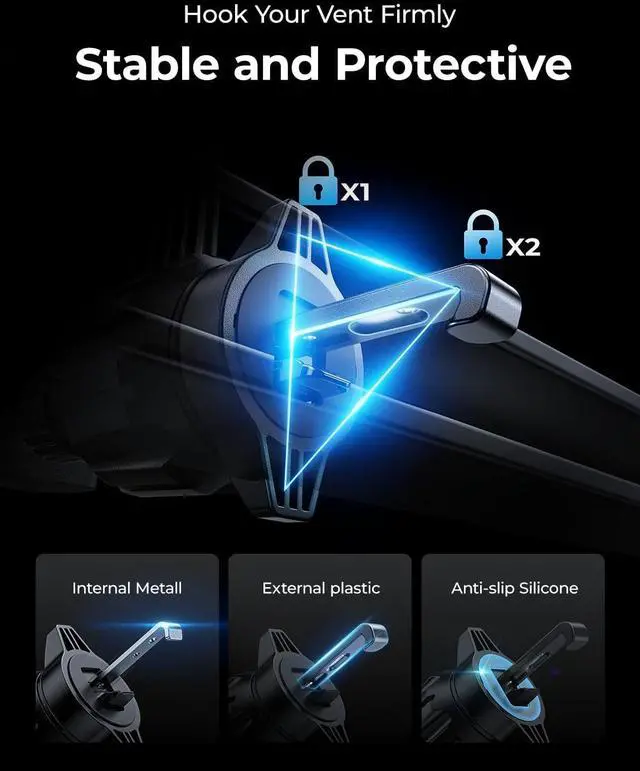 What have we done? We have upgraded the material on 2 bases. The adhesive of the suction cup base is the most adhesive honeycomb nano 3M adhesive on the market, which has excellent stability after fixing, and can accept temperatures of -4-85F. The air vent hook clip also uses a metal wrapped plastic hook clip, which maintains the stability and protects your air vents from being scratched at the same time.