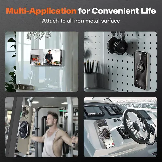 Powerful Magnetic Base-Easy to Attach Gym Equipment: Built-in 4*N54 industrial magnets, making it easy to attach to any gym equipment, providing a hands-free solution for Live broadcasts, following training sessions, and recording exercise moments. An extra layer of silicone is added to the base to prevent the device from being scratched