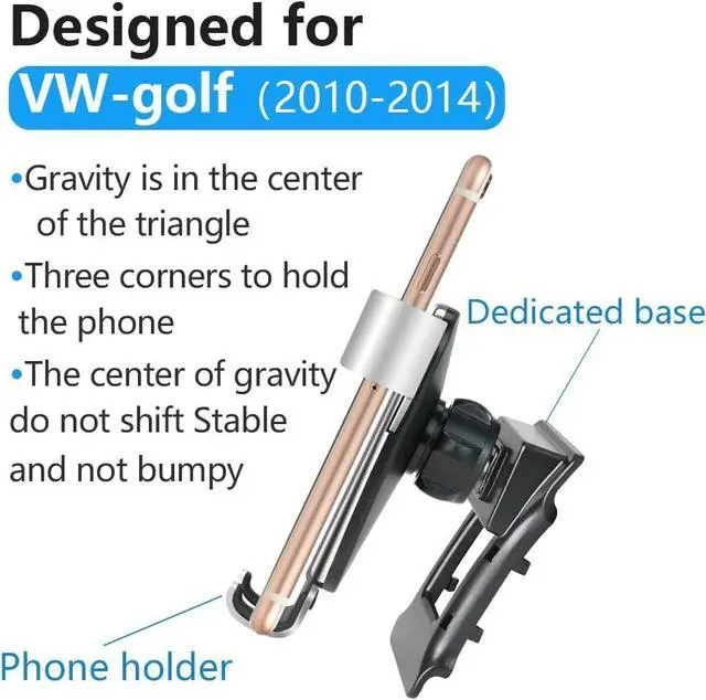 Only compatible with: Only applicable For Volkswagen Golf 2010-2014 and Volkswagen Golf GTI 2010-2014. SPECIAL CAR BASE DESIGN, only for a specific model development. The most appropriate location, make sure the phone is in the best viewing Angle.