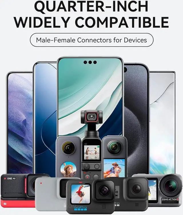 Tips: The magnetic ring on the top of this cell phone tripod is removable, and the 1/4 screw on the top of the tripod can be fit all kinds of sports action cameras with 1/4 threaded holes (Such as compatible with Go Pro series, DJI OSMO series, insta360 series etc).