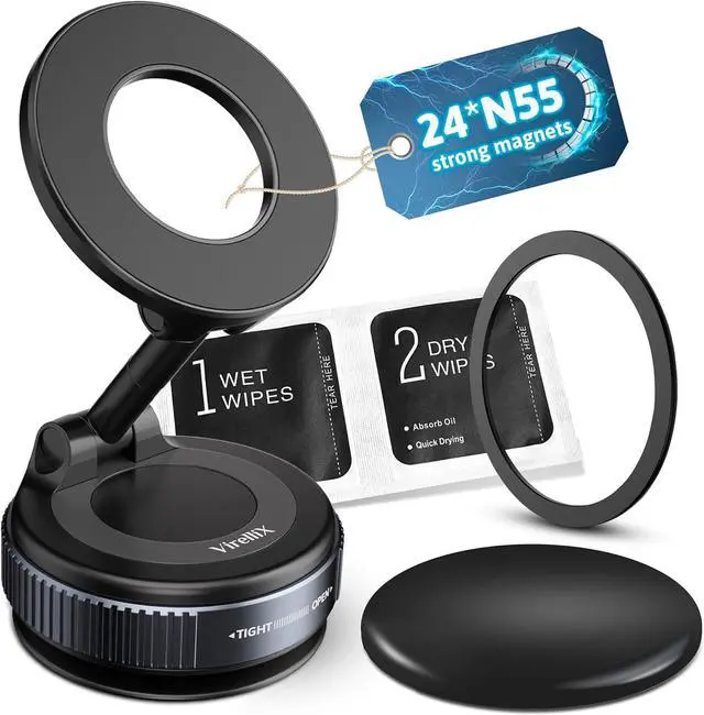 Ideal for cars homes and offices. Not recommended for curved or uneven surfaces.???????????????????????????????????????????????????????? Supports iPhone 16 Pro Max/Pro/Plus/16 to iPhone 8 Galaxy S22/S21/S20 Note 20/10 Plus and more. Includes a magnetic ring for non-MagSafe phones/cases. Holds phones up to 3mm thick with 2800gf magnetic force.