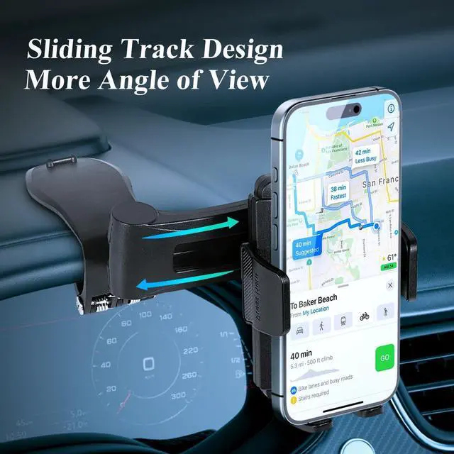 Sliding track design: With a sliding track length of 6.5 centimeters the phone's position can be adjusted 360 degrees to prevent obstruction of the line of sight. Horizontal and Vertical