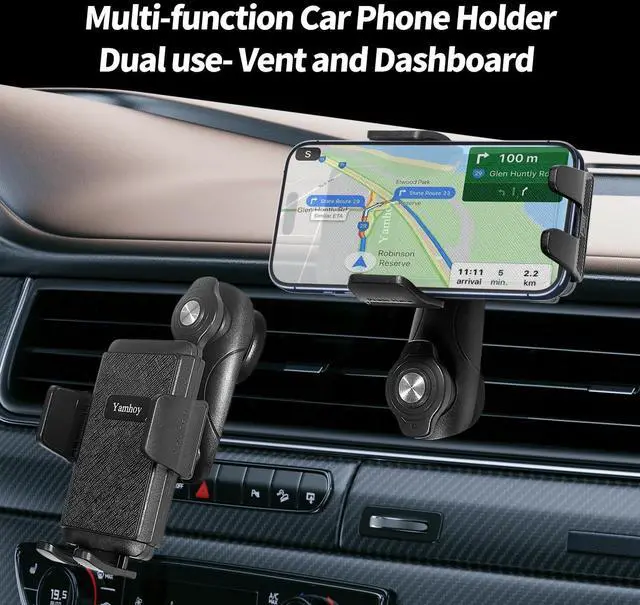 Screen Usage Design: The universal ball rotates 360 degrees allowing the phone to switch between horizontal and vertical screens freely supporting different viewing angles and maps. Combination of clips and hooks; Added metal hook accessory which can meet the needs of both dashboard and vent use. Universal CompatibilityThe car phone holder is compatible with all the smartphones ( 4.0 - 7.2 inches) and thicker cases.