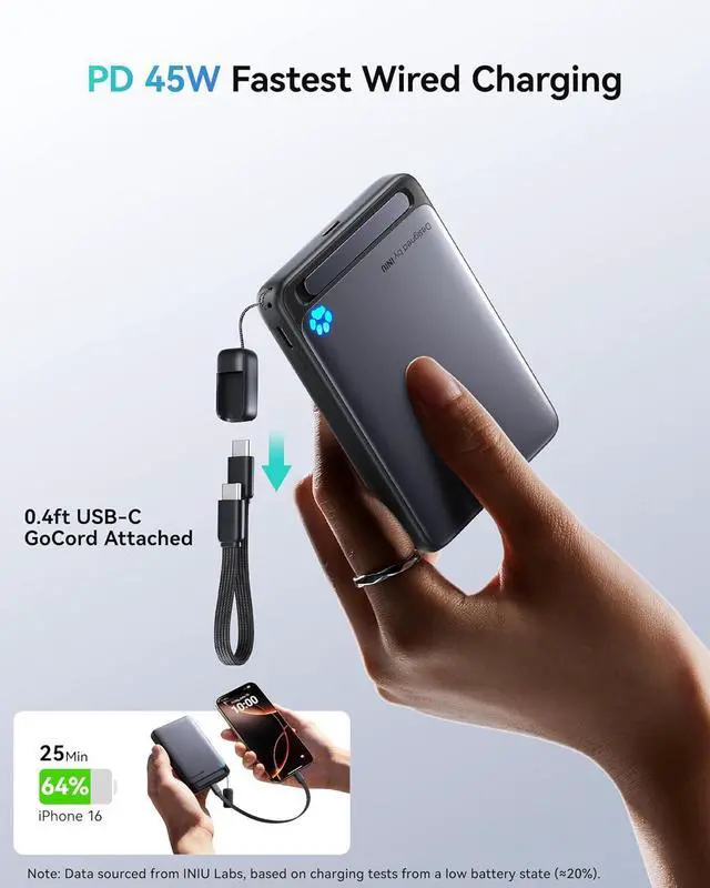Magnetic Power Bank: INIU's exclusive TinyCell technology enables an ultra-slim 0.5 in 10 000mAh power bank perfectly fitting into your pocket for seamless portability without the bulk. Latest Qi2-Certified 15W