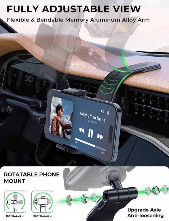 COMPATIBILITY: Our car phone holder features an upgraded clamp arm with a rubber pad to prevent scratches. The clip arm accommodates phones up to 1.05 inches thick making it compatible with thick cases wallet cases and battery cases and ensures excellent stability and protection for your phoneABSOLUTELY 100%
