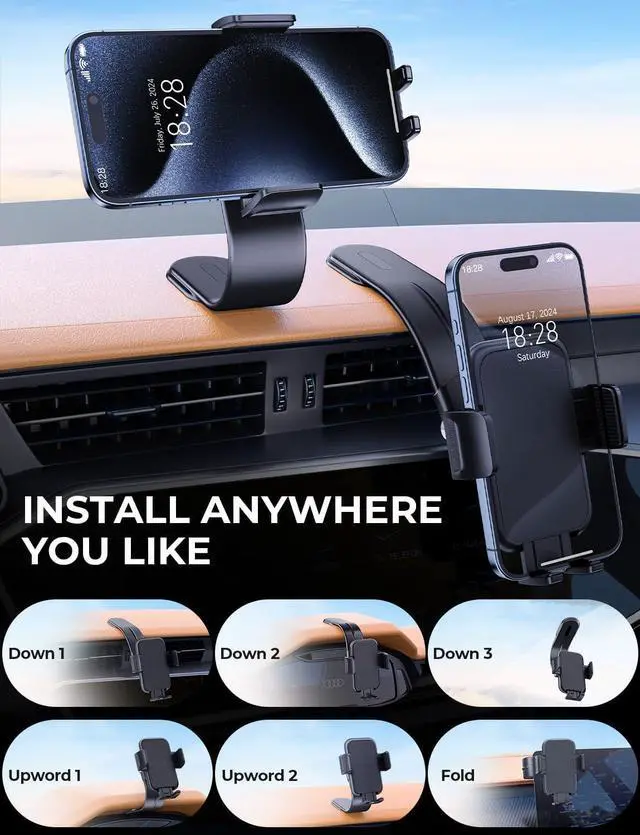 MEMORY ALLOY MOUNT: The latest Tryone phone holders for your car feature upgraded memory aluminum alloy construction offering unmatched durability. This versatile car phone mount effortlessly transitions between standing lying and folded modes. Designed to withstand thousands of bends without leaving a trace this cell phone holder for car ensures long-lasting performance and adaptability for any driving situationUNIVERSAL