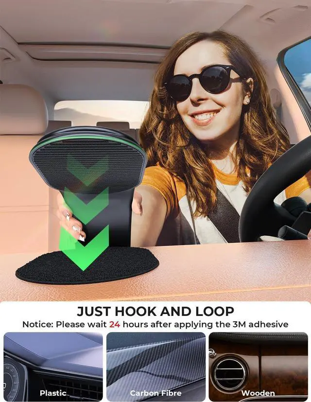 PHONE HOLDER: With the innovative Velcro design you can effortlessly reposition the mount to any desired location and adjust its shape to suit your driving habits in just 1 second. Thanks to the Velcro design it provides more installation options on the dashboard center console behind the steering wheel and behind the car touchscreen10X
