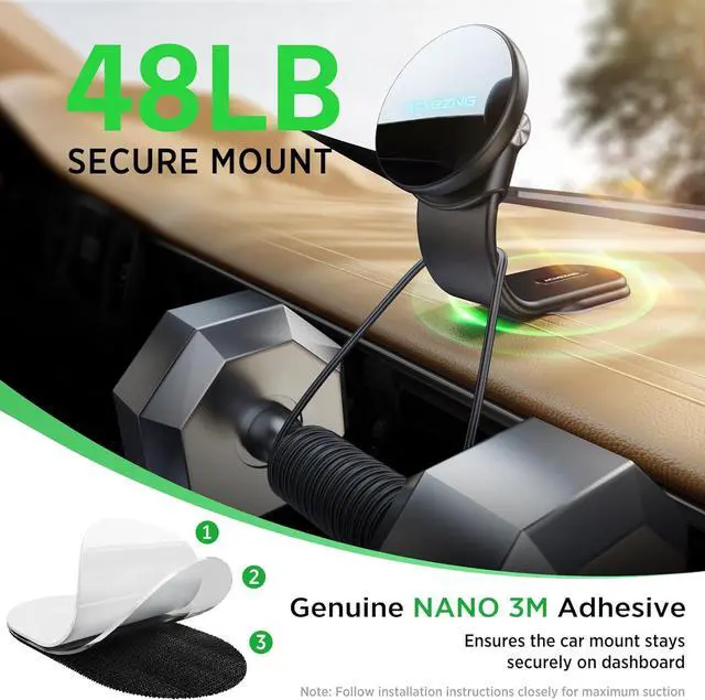 Adhesive Unmatched Stability: Redefining stability our cell phone car mount features automotive-specific grades 3M adhesive with over 55 lbs of bonding strength 10 times more stable than older versions ensuring lasting adhesion. Even in extreme temperatures (-104°F to 214°F) our nano adhesive ensures a secure hold while it's time for a change its residue-free removal makes installation and removal a breeze. Experience unparalleled reliability regardless of the conditions.