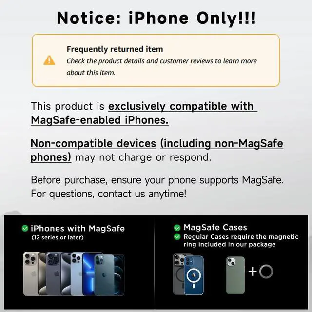 Easy Installation: Our car phone holder mount is compatible with iPhone 16/15/14/13/12 series and all other phones compatible with MagSafe charging fitting all vehicle types. With 1 sec attachment installation is a breeze allowing you to focus on driving. We are ready to address any product questions within 12 hours. Your voice is important and we look forward to communicating with you in depth!