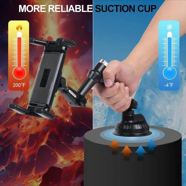 Strong Suction Cup: The phone holder mount is equipped with non-slip rubber pads and heat-resistant material which can adhere firmly to the dashboard and windshield and keep the mount stable in any conditions. To restore adhesion simply rinse the sticky surface with warm water and wipe dry.